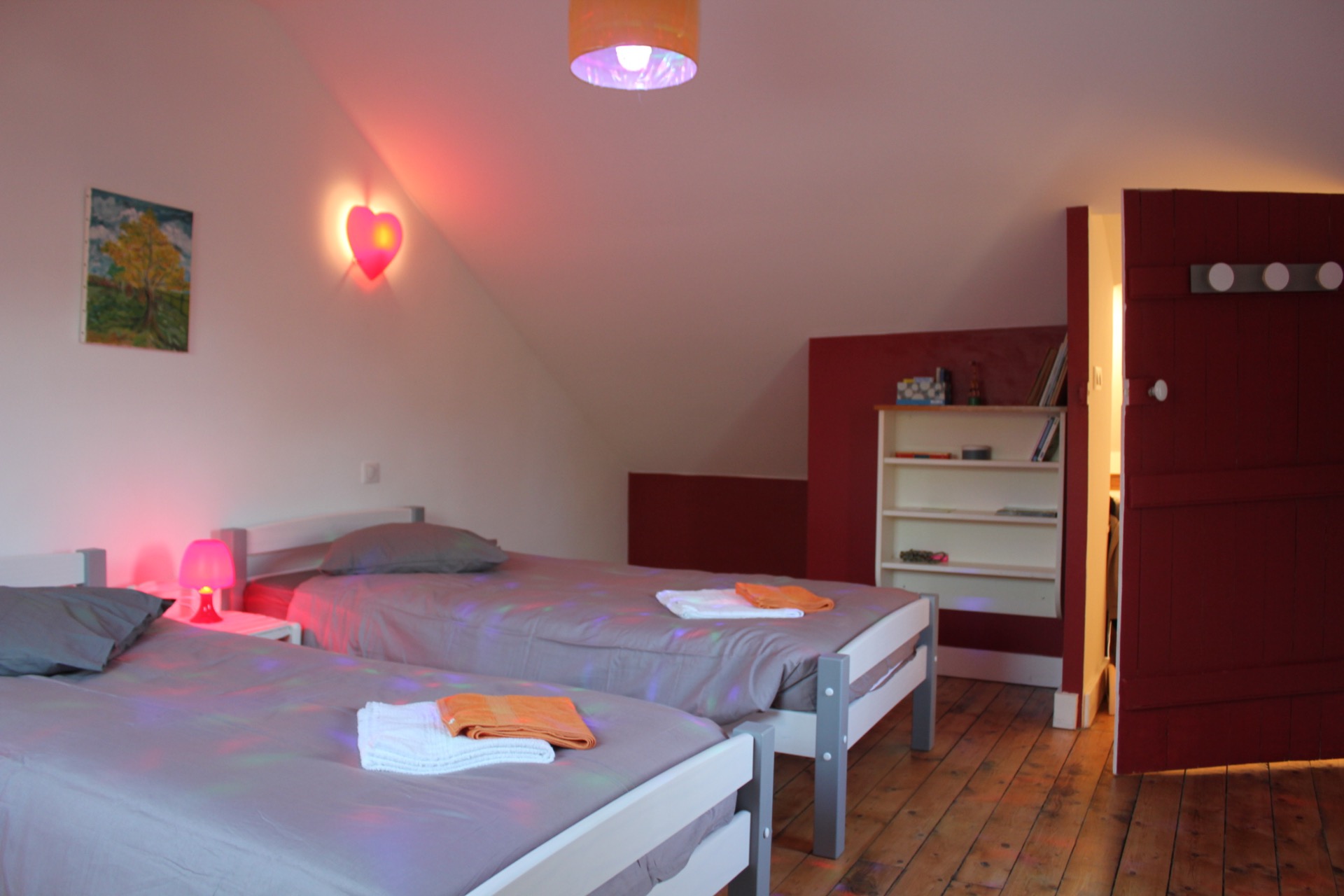 - Un 2e étage avec 3 lits une place (pouvant êtres rassemblés pour faire une deuxième chambre adulte si besoin), cette chambre possède un point d'eau.