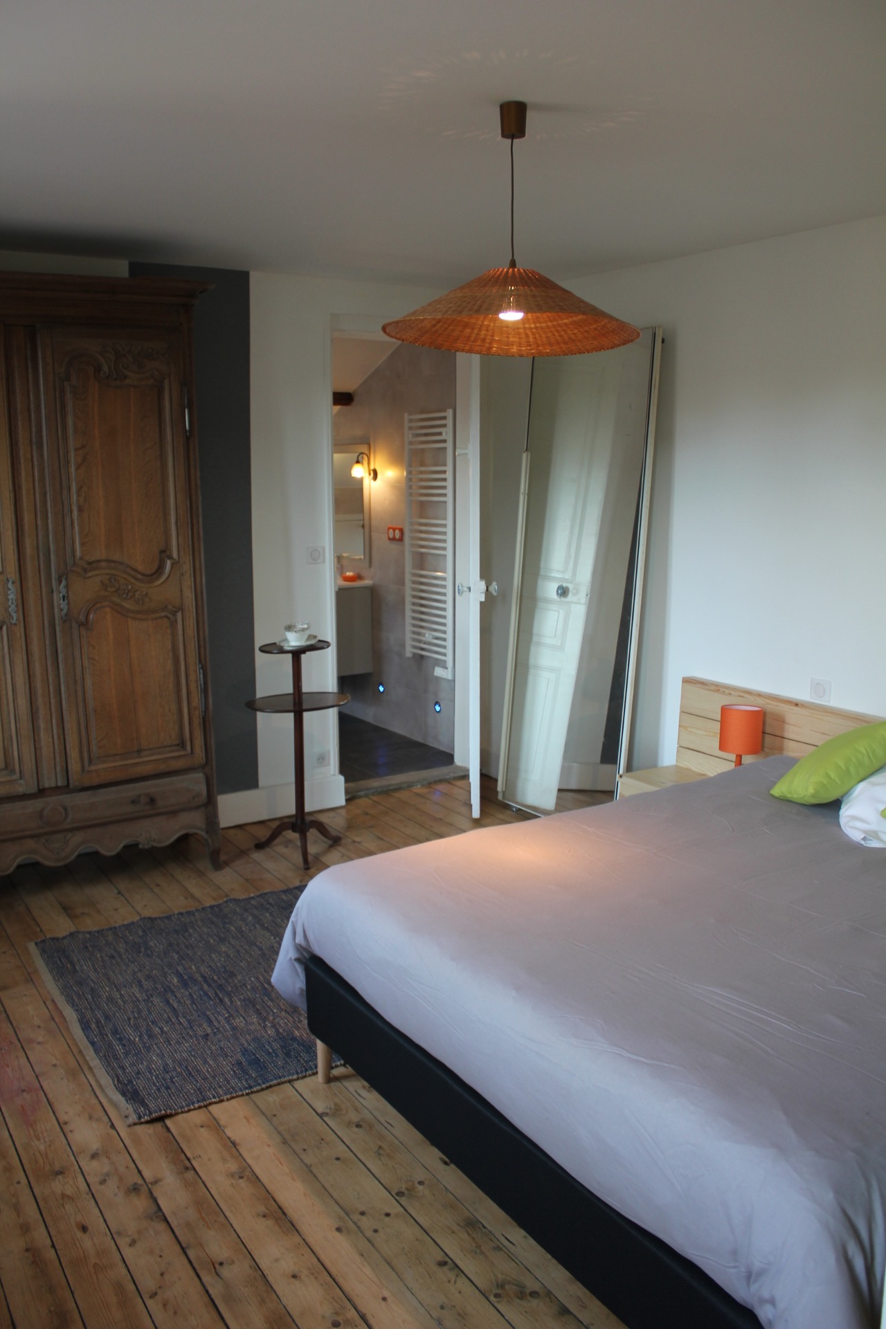 Avec un lit Queen size 160x200 et une grande armoire ancienne